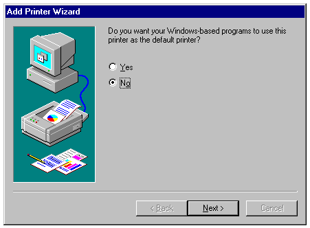 Specifying that the printer won't be the default printer for Windows applications.