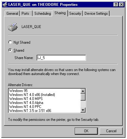 Specifying a Share Name for the printer.
