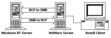 Although Windows NT Server's support for diverse network and transport layer protocols has eliminated one problem, still remaining is the issue of what core protocol is used for communication between servers and workstations. Microsoft uses the Server Message Block (SMB) protocol for this purpose, whereas NetWare uses NetWare Core Protocol (NCP). If NetWare clients are to be able to access Windows NT servers, and if Windows NT clients are to be able to access NetWare servers, something must be done to translate between these two fundamental but incompatible protocols. Microsoft provides the following two utilities to bridge this gap: