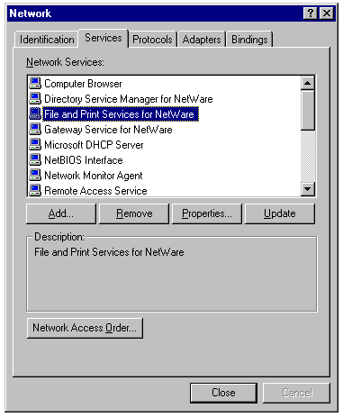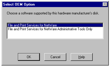 Installing File and Print Services for NetWare from the distribution diskette.