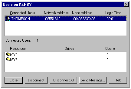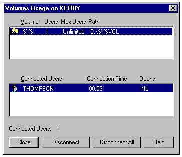The Users, Volumes, and Files buttons in the File and Print Services for NetWare on Servername dialog allow you to manage the FPNW gateway, as follows: