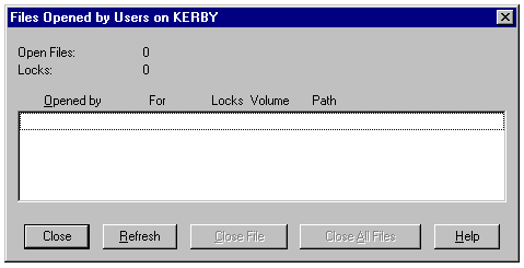 Displaying file statistics and managing files with the Files Opened by Users dialog.