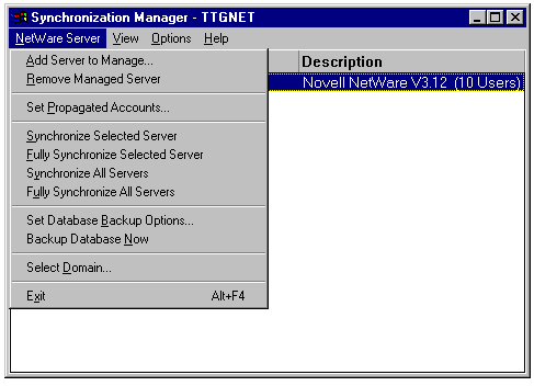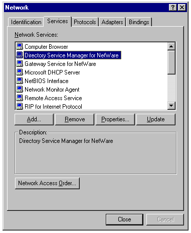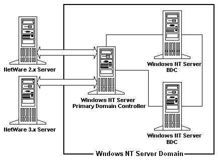 Directory Service Manager for NetWare connecting NetWare 2.x/3.x servers to a Windows NT 4.0 domain.