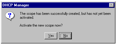 The DHCP Manager message that lets you activate your newly defined DHCP scope.