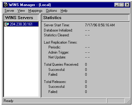 The opening window of WINS Manager.
