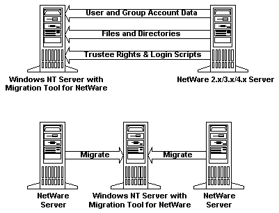Using the Migration Tool for NetWare results in no changes whatsoever to the NetWare server and can be done without taking down either the NetWare server or the Windows NT server. All services on both the NetWare server and the Windows NT server continue to be available to users during the migration process.