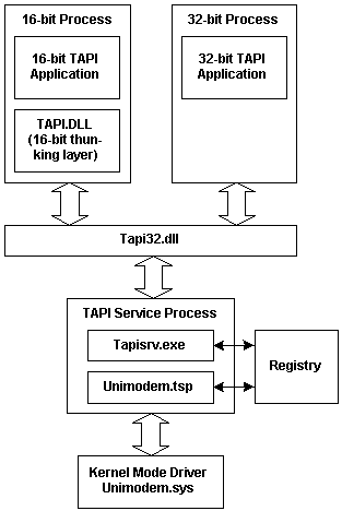 Unimodem driver, both of which originated in Windows 95. TAPI 2.0 brings