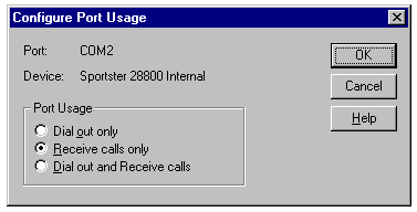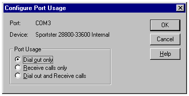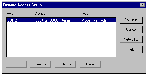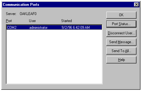 Ports dialog. An entry for each COM port of the server set up for RAS appears