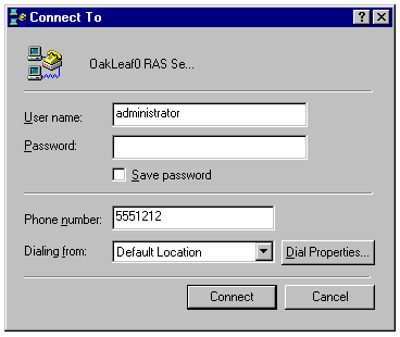 If you haven't enabled dial-out RAS on the server, the Dial-Up Networking