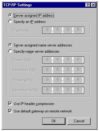 assigning TCP/IP addresses to DUN clients.