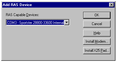 If the server has more than one COM port assigned to RAS, you can select