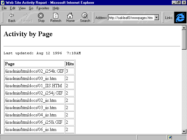 Bringing your intranet or Internet site online after installing and setting up Internet Information Server (IIS) 2.0 is only the first step toward making your new system a success. You must consider many factors in order to achieve the objective of providing accurate and timely information to your site's users. As the site administrator or Webmaster, you need up-to-date details on your site's activity and its demands on your system. This chapter concentrates on two basic areas: Activity logging and distribution of activity reports, and generating Web pages with tools that are included with IIS 2.0 or available for no-charge downloading from Microsoft's Web site.
