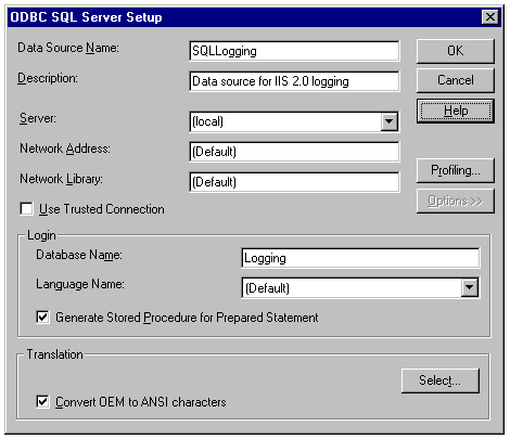 The ODBC data source is one of the most common source of problems with logging databases, as is the Internet Database Connector (IDC) described later in the "Using the Internet Database Connector" section. Problems with ODBC data sources are common to SQL Server and other client/server or desktop databases having 32-bit ODBC drivers. Thus, it's important to understand the details of setting up ODBC data sources for access by IIS 2.0 and server applications that run with IIS 2.0.