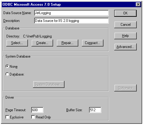 To solve this problem, Microsoft added ODBC system data sources for 32-bit ODBC 2.5. An ODBC system data source is accessible as soon as Windows NT Server (and SQL Server, if used) starts. ODBC system data sources don't depend on a user logging on to the server. You use ODBC system data sources for logging and for most of the dynamic Web pages you create from information stored in databases.