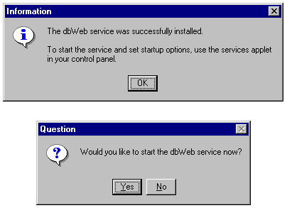 You must change the Startup parameter for the dbWeb service with Control Panel's Services tool from Manual to Automatic, if you want dbWeb to run as a Windows NT service when you run dbWeb as a production service.
