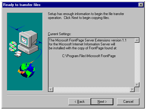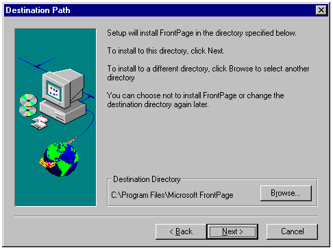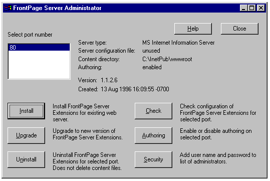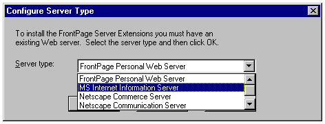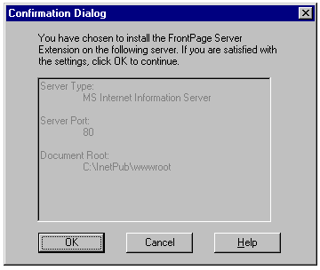 Confirming the installation location for the IIS 2.0 extensions for FrontPage 1.1.
