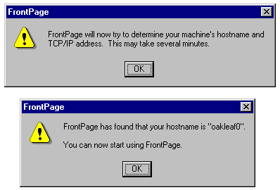 Determining the server name and TCP/IP address the first time you start FrontPage's Server Administrator.