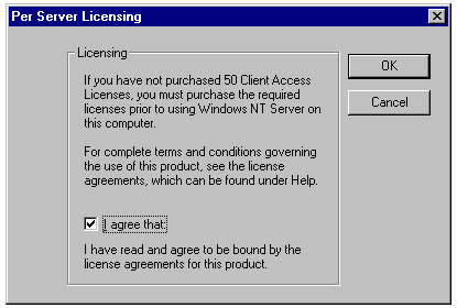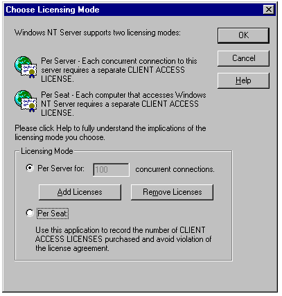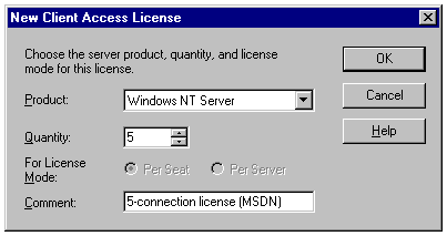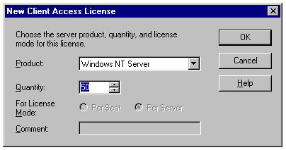 Adding per-server licenses for Windows NT Server 4.0.