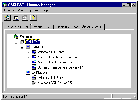 Windows NT Server 4.0's License Management service introduces a new term, enterprise server, to define a master Primary Domain Controller (PDC) to which other PDCs in the domain and trusting domains replicate license information. An enterprise server can be a PDC or a plain server. In a single-domain environment, the PDC is the master server for license management purposes. You define the enterprise server or master server with Control Panel's License tool. The License tool also lets you specify the license mode for each service on the computer, the number of per-server licenses, and replication frequency and time. Only the License Manager can administer per-seat licenses.