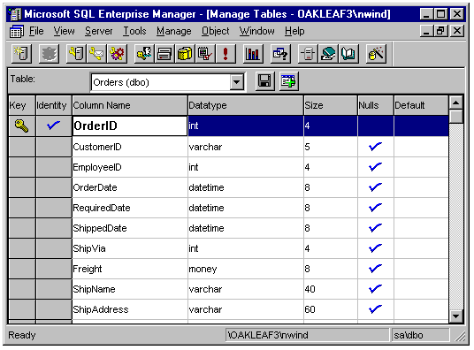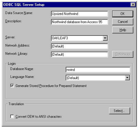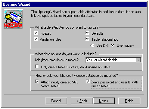 - Use Access 95 and the Upsizing Wizard to import table structures and