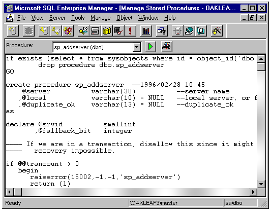 SQL Enterprise Manager includes complete facilities for managing SQL