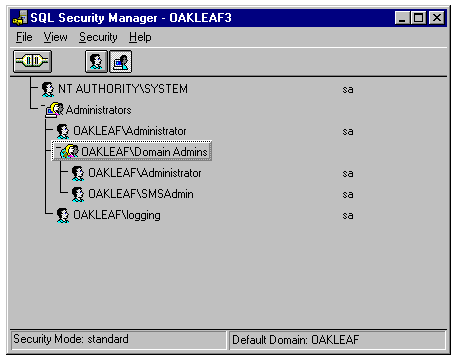 Logins added to the OAKLEAF3 server from the Domain$Users group.