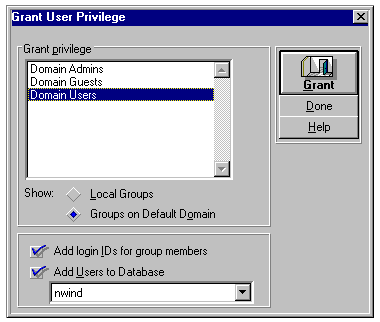Adding Domain Users as the Domain$Users group of SQL Server.