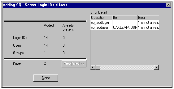 - Mark the Add Login IDs for Group Members and Add Users to Database