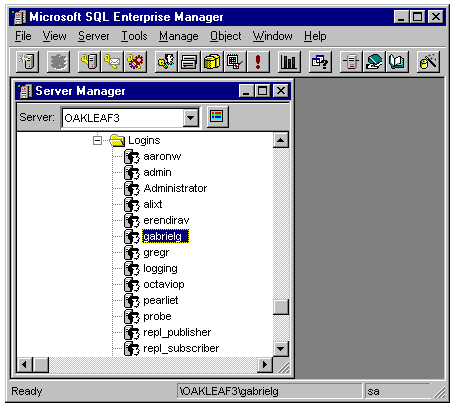 - Close and relaunch SQL Enterprise Manager, and then expand the Logins