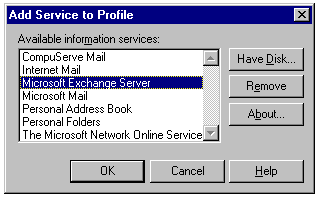 You add new profiles by clicking the Add button to start the Windows 95 Inbox Setup Wizard or the Windows NT Microsoft Exchange Setup Wizard. The following steps describe how to set up a new profile using the Inbox Setup Wizard: