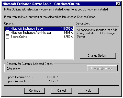 Exchange now has the information it needs to install the files onto your server. The actual process of moving the files to the server can be quite lengthy; the footprint for Exchange is more than 100M, and setting up Exchange objects takes a considerable period of time. Consider taking a coffee break while the installation process completes.