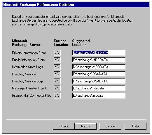 The Optimizer's suggestions for relocating Exchange files.