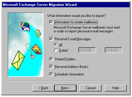 Selecting the MS Mail information to migrate to Exchange.