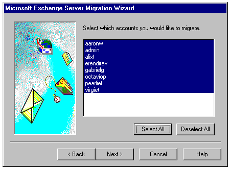 Specifying the user accounts to convert to Exchange.