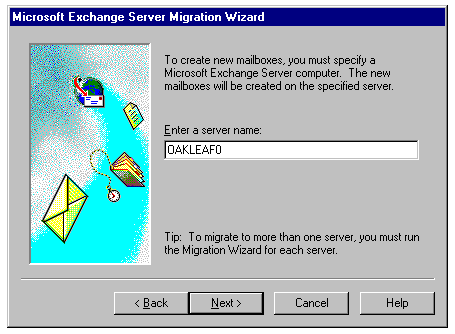 Providing the Exchange server name for MS Mail migration