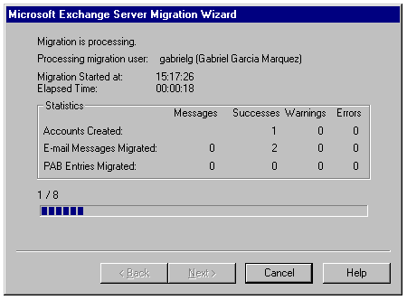 In each case, the users' mailboxes are converted and placed into the Exchange system.