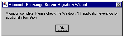 The message box indicating that migration is complete.