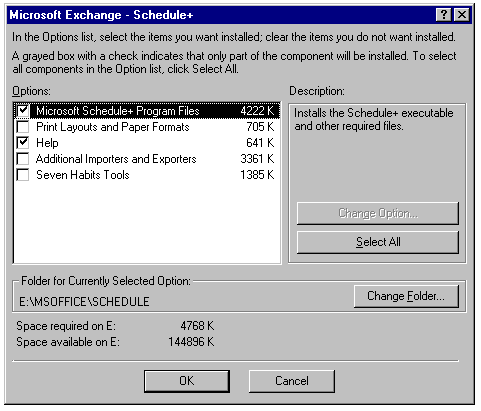 Specifying required options for Schedule+.