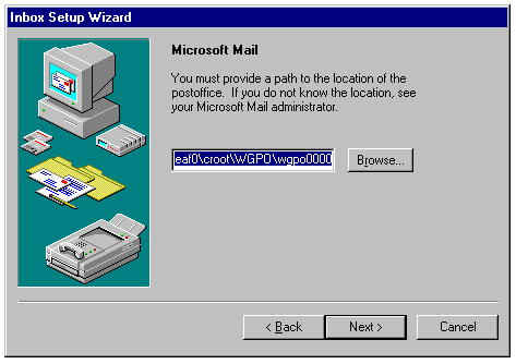Specifying the location of the existing Microsoft Mail postoffice.