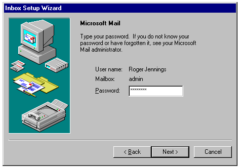 Verifying the user's MS Mail account and entering the mailbox password.
