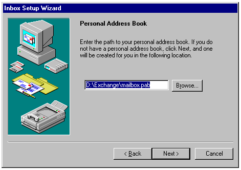 Specifying the location of an existing Personal Address Book.