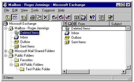 After installing the new Exchange client, test the connection to the Exchange server. If you used the Migration Wizard for MS Mail and specified conversion of shared folders, a Microsoft Mail Shared Folders item appears in the Explorer-like left pane (see fig. 23.46).