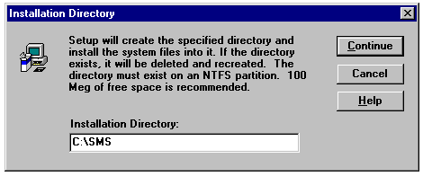 System Management Server installation takes 15 to 20 minutes. You must install SMS to an NTFS partition. To install SMS, follow these steps: