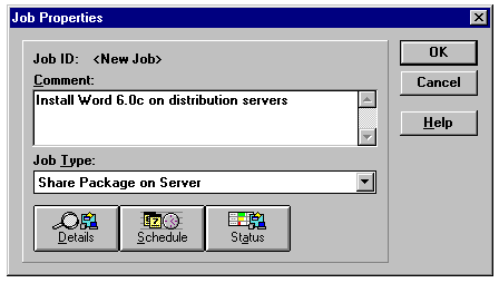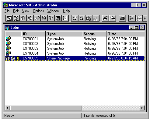 There are four types of jobs in SMS. One job type is called System Job and is created automatically by SMS to deal with configuration issues. Following are the three types of jobs that you can create: