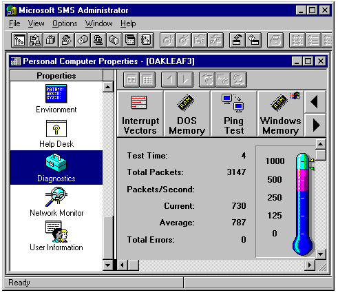 In addition to Help Desk, a number of tools are available from the Diagnostics tool in the Properties pane. When you click one of the Diagnostics buttons, the server interrogates the client. Figure 25.35 illustrates the result of a Ping Test on a client.
